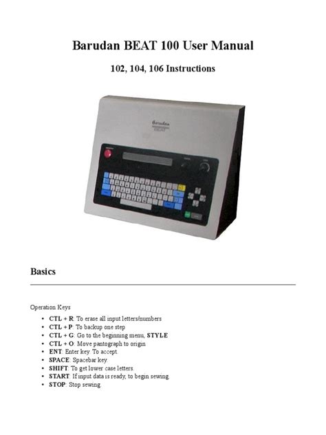 Reading Online Barudan BEAT 100 User Manual pdf Epub Gutenberg